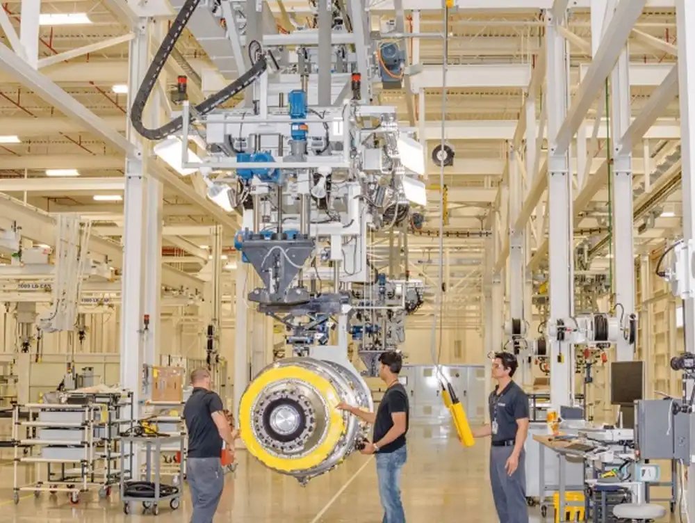 High precision aerospace engine testing and inspection systems used in aircraft manufacturing facilities.